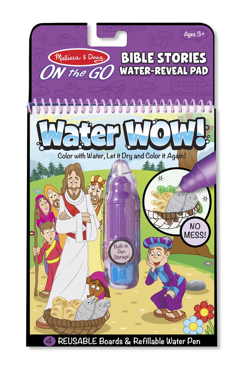 No-mess painting for kids! This exciting paint-with-water coloring book includes four reusable pages and a refillable water pen. Simply use the pen to color in each scene--details and vibrant color appear with every stroke! Then let the page dry to erase the pictures and fill it in again and again. This Bible-themed book includes four scenes to color and a search-and-find activity for each scene. The chunky-sized water pen is easy for kids to hold and stores neatly right in the front cover, so Water WOW books make ideal travel activity books for kids!