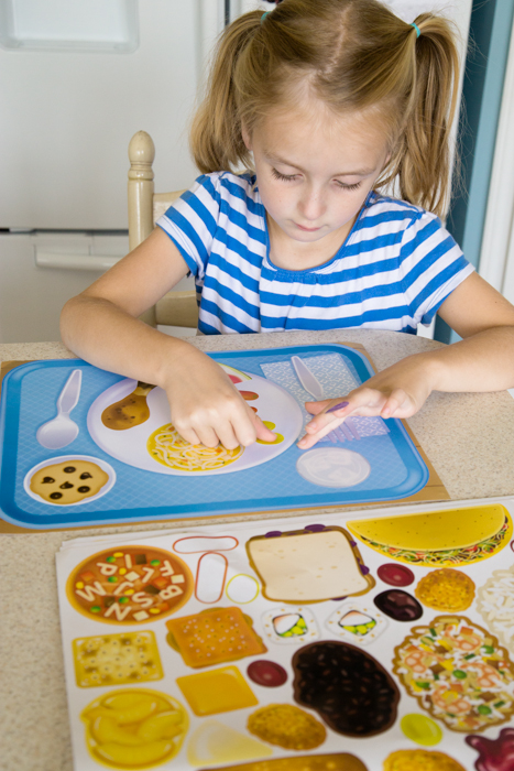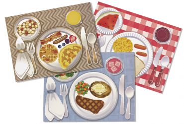 Make a restaurant! Set a table with placemats in the same design. Then create the perfect atmosphere: You can make a sign, add a centerpiece to the table or put on music to set the right mood. When your guests arrive, bring out a "tray" of food stickers and let them place their orders. Serve the customers by peeling up the stickers they request and placing the food on their plates!