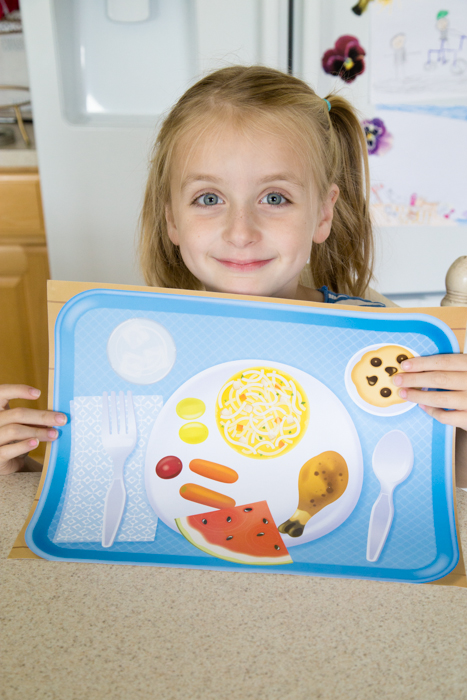 Pick the right number of items from each food group to fill your plate with a well-balanced meal: 2 vegetables, 2 grains, 1 fruit, 1 protein, 1 dairy. Then treat yourself to a dessert sticker!