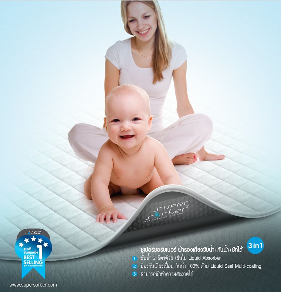 Supersorber® คือ แผ่นรองซับน้ำ หรือ แผ่นรองที่นอน ทำหน้าที่ดูดซับ (Absorb) น้ำ